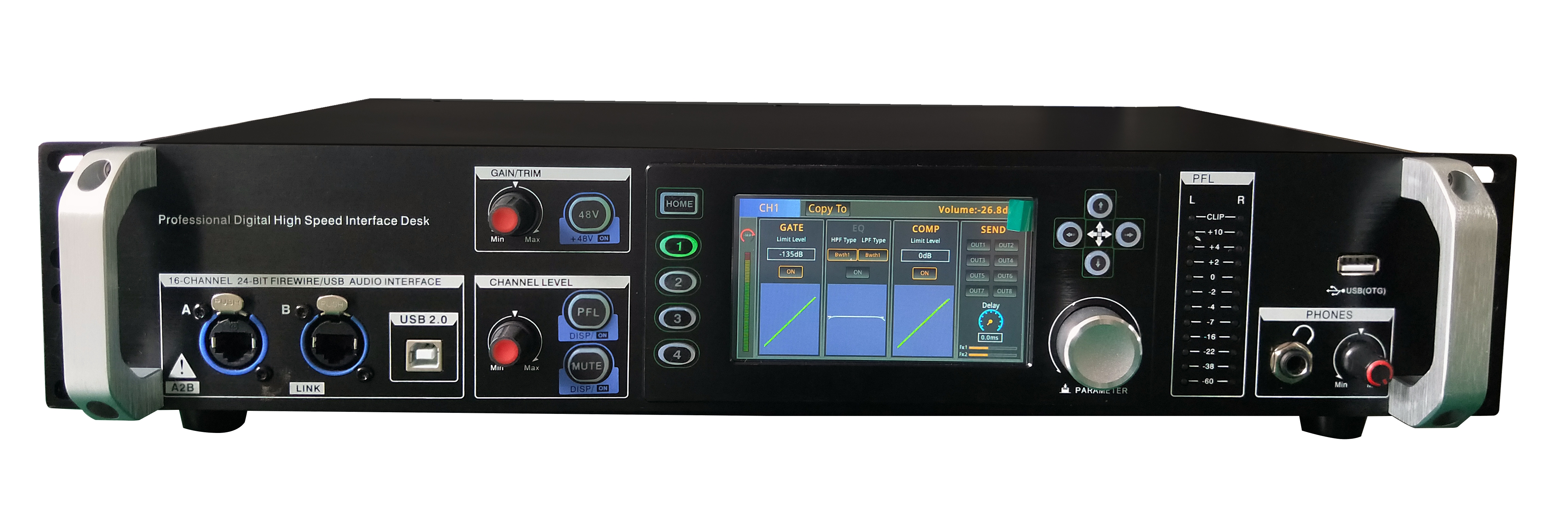 输出通道处理:高低通滤波,15段参量均衡,主输出31段(GEQ支持通过在推子上操控),压缩器,延时(每通道350ms=119米),相位